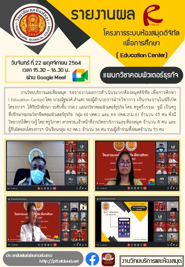 รายงานผลการดำเนินระบบห้องสมุดดิจิทัล เพื่อการศึกษา (Education Center)