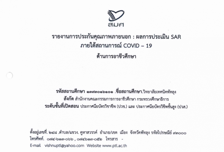 รายงานการประกันคุณภาพภายนอก : ผลการประเมิน SAR ภายใต้สถานการณ์ COVID – 19 ด้านการอาชีวศึกษา