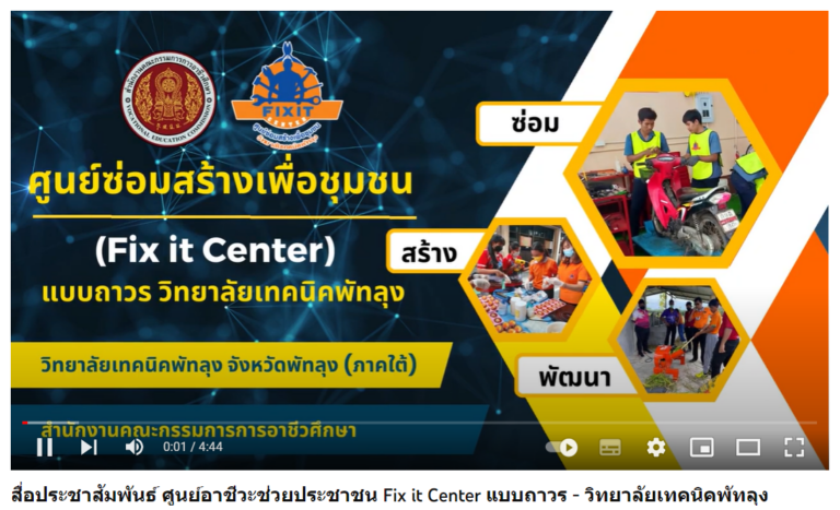 คลิปวิดีโอประชาสัมพันธ์ FIX IT CENTER แบบถาวร ประจำปีงบประมาณ พ.ศ.2565