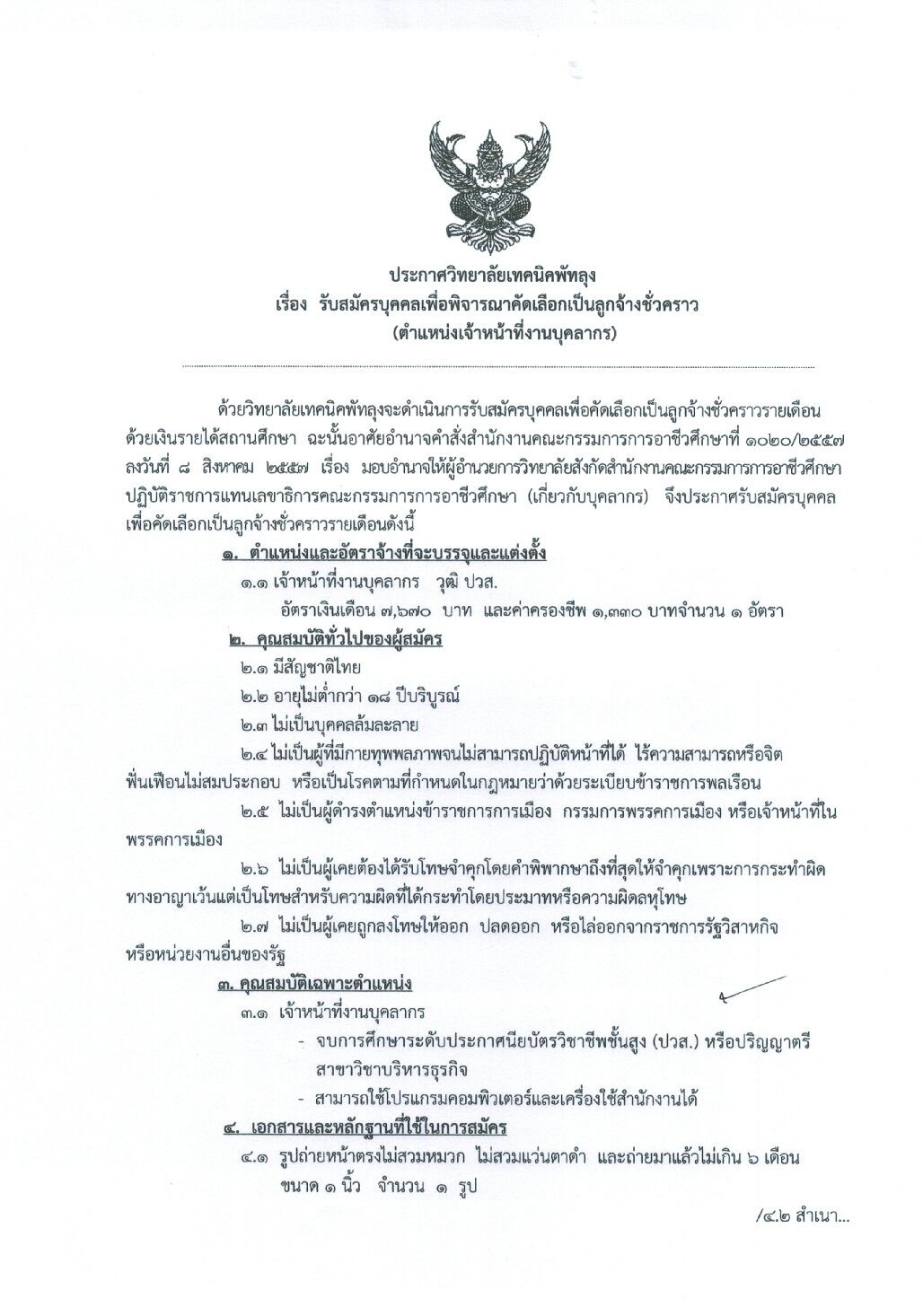 วิทยาลัยเทคนิคพัทลุง เปิดรับสมัครนักเรียนนักศึกษา (รอบโควตา) ประจำปีการศึกษา 2569
