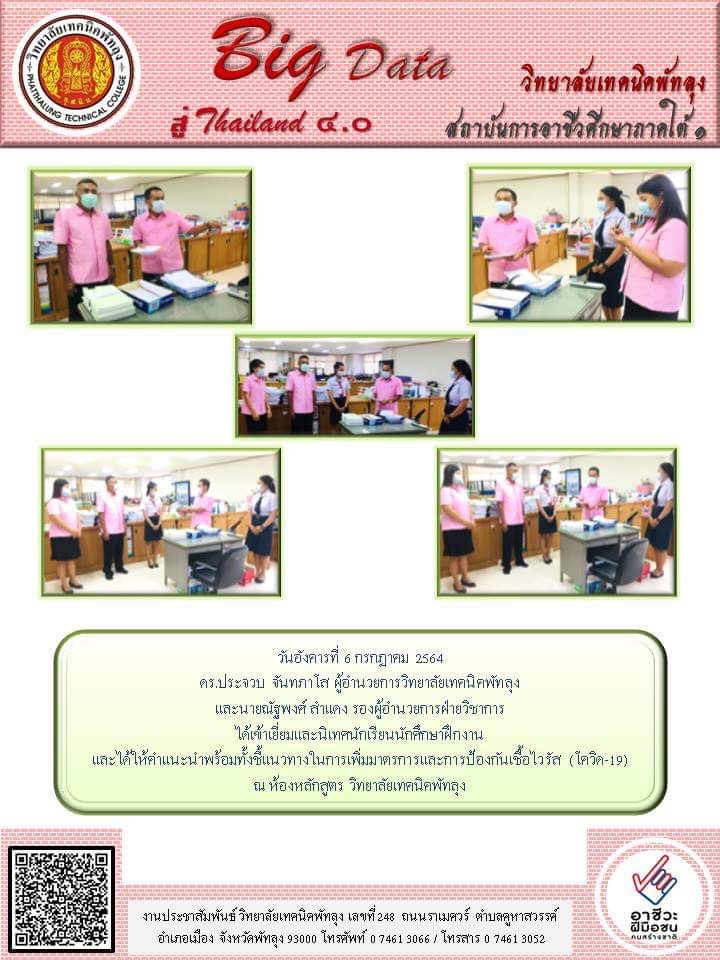 Big Data เทคนิคพัทลุง สู่ Thailand 4.0 ข่าวประชาสัมพันธ์ วิทยาลัยเทคนิคพัทลุง ด้วยความเป็นห่วงจาก ดร.ประจวบ จันทภาโส ผู้อำนวยการวิทยาลัยเทคนิคพัทลุงได้เข้าตรวจเยี่ยมบริเวณโรงอาหาร โดยงานอาคารสถานที่ ,งานสวัสดิการพยาบาล, แผนกวิชาช่างเชื่อมโลหะ ที่ได้จัดทำแผงป้องกันกั้นจัดระเบียบที่นั่งภายในบริเวณโรงอาหารและได้ให้คำแนะนำพร้อมทั้งชี้แนวทางในการเพิ่มมาตรการและการป้องกันเชื้อไวรัส โควิด-19 แก่นักเรียนน