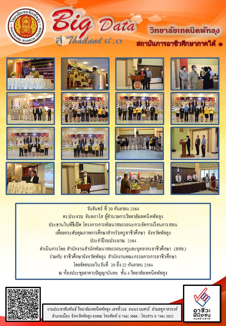 Big Data เทคนิคพัทลุง สู่ Thailand 4.0ข่าวประชาสัมพันธ์ วิทยาลัยเทคนิคพัทลุงในวันพุธที่ 22 กันยายน 2564 เวลา 10.00 น. วิทยาลัยเทคนิคพัทลุง ภายใต้การบริหารงานโดย ดร.ประจวบ จันทภาโส ผู้อำนวยการวิทยาลัยเทคนิคพัทลุง ได้มอบหมายให้นายปรีชา เหมือนกู้ รองผู้อำนวยการฝ่ายบริหารฯ ,หัวหน้าแผนกวิชาการบัญชี หัวหน้างานโครงการพิเศษฯ, คุณครูแผนกวิชาการบัญชี และคุณครูแผนกวิชาช่างก่อสร้างและโยธา ลงพื้นที่มอบสิ่งของเ