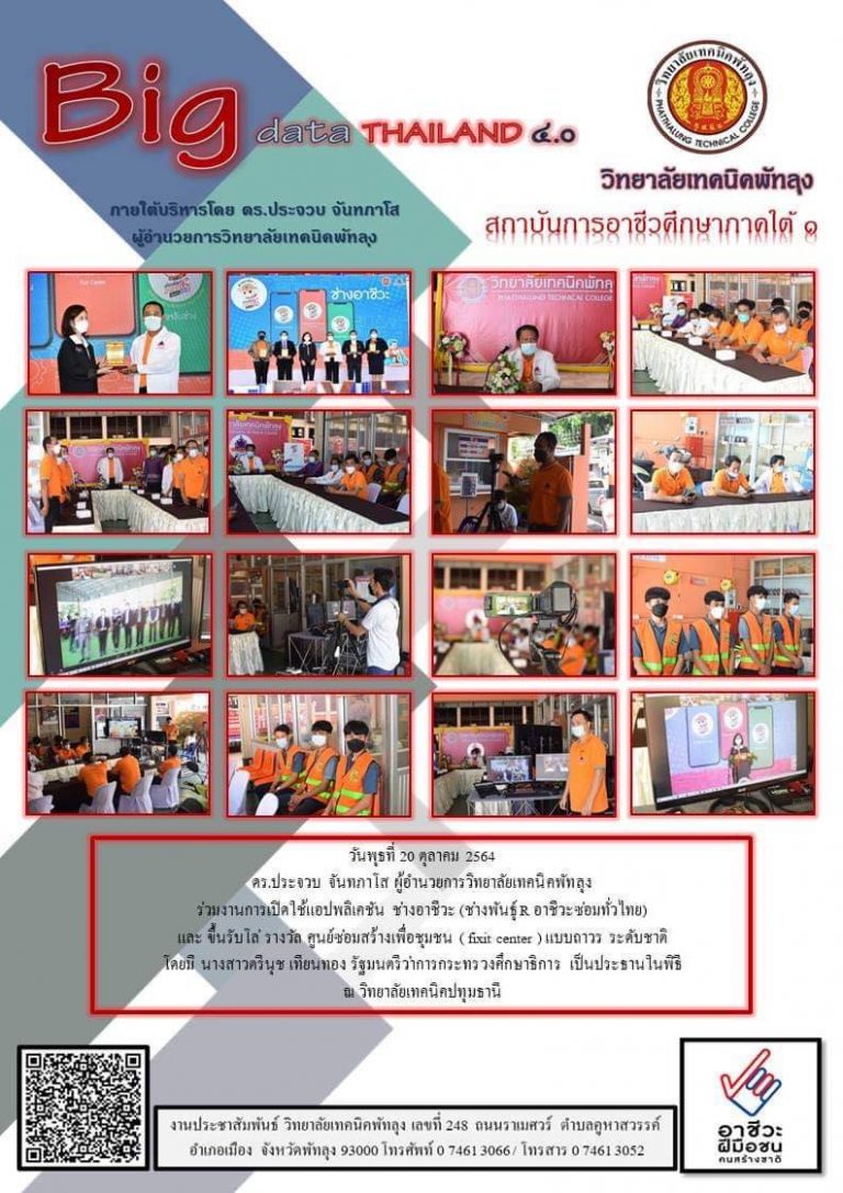 รางวัลที่น่าภาคภูมิใจ “รางวัลชนะเลิศ ระดับชาติ” วิทยาลัยเทคนิคพัทลุง สถานศึกษายอดเยี่ยม ศูนย์ซ่อมสร้างเพื่อชุมชน (Fix it center) แบบถาวร ประจำปีงบประมาณ พ.ศ.2563