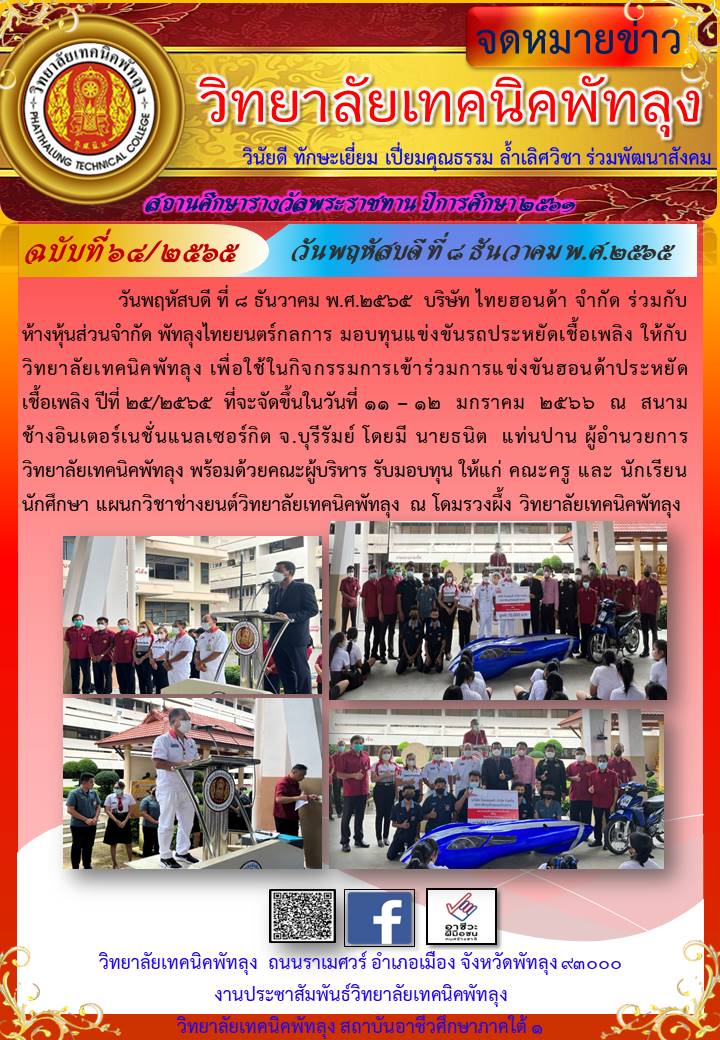 วิทยาลัยเทคนิคพัทลุงภายใต้การบริหารงานโดยนายธนิต แท่นปาน ผู้อำนวยการวิทยาลัยเทคนิคพัทลุง ขอแสดงความยินดี รายงานผลการแข่งขันทักษะการจัดการCloud Computing ได้รับรางวัลรองชนะเลิศอันดับ 1 ระดับเหรียญทอง ได้ไปต่อระดับชาติ โดยมีผู้เข้าร่วมการแข่งขัน1.นายธัญวิชญ์ บางยี่ขัน 2.นายนนท์ทิชัย รัตนพันธ์โดยมีครูผู้ควบคุม นางสาวอัจจิมา ชนะกาญจน์
