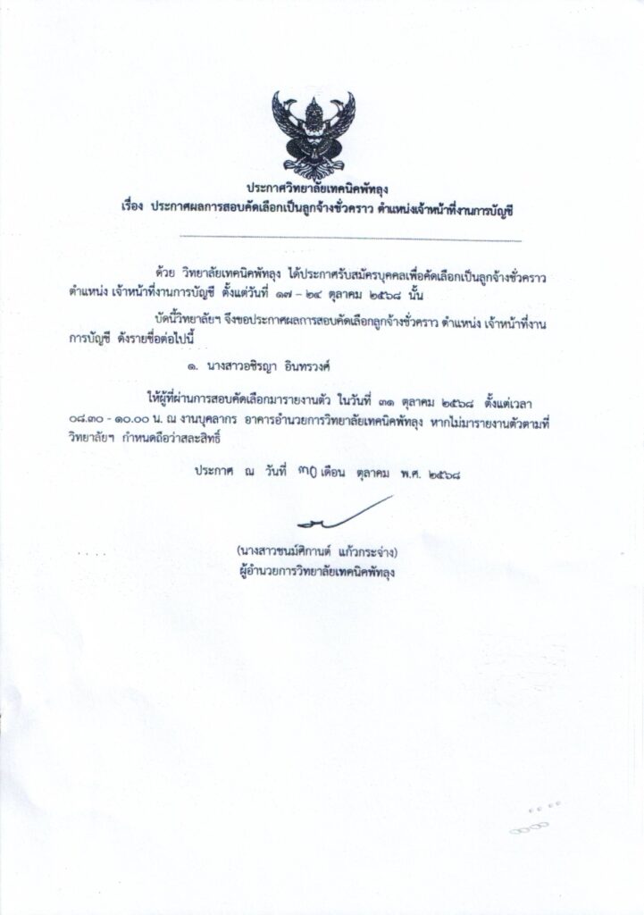 ประกาศผลการสอบคัดเลือกเจ้าหน้าที่งานบัญชี ข่าวงานบุคลากร 31 ต.ค. 2025 12 share tweet share ประกาศผลการสอบคัดเลือกเจ้าหน้าที่งานบัญดาวน์โหลด