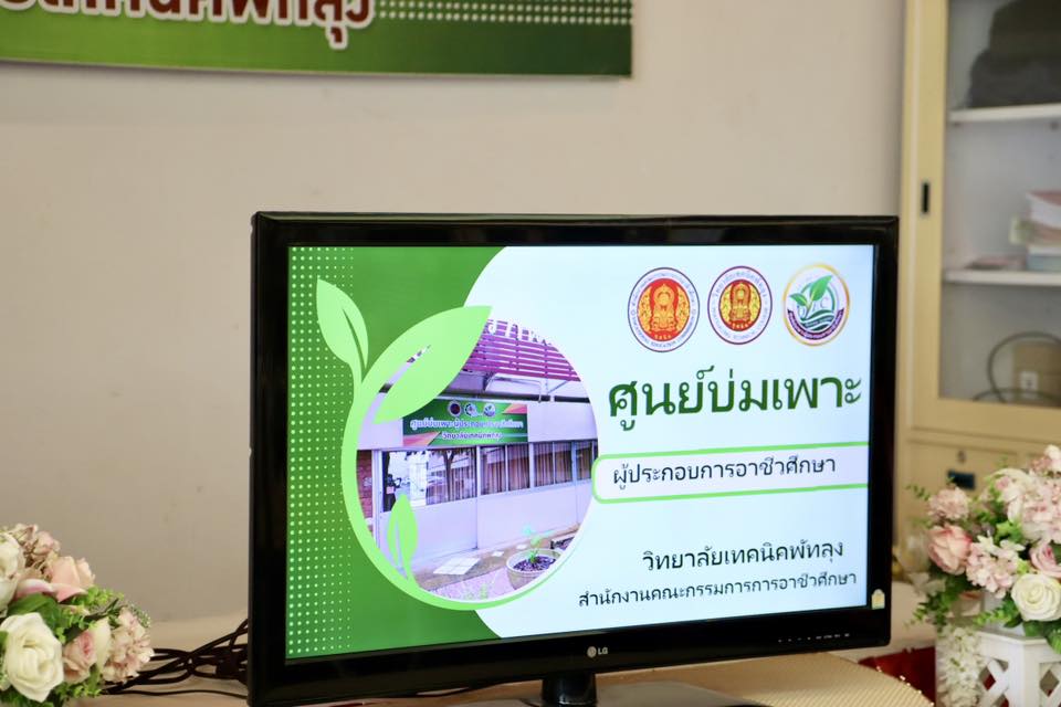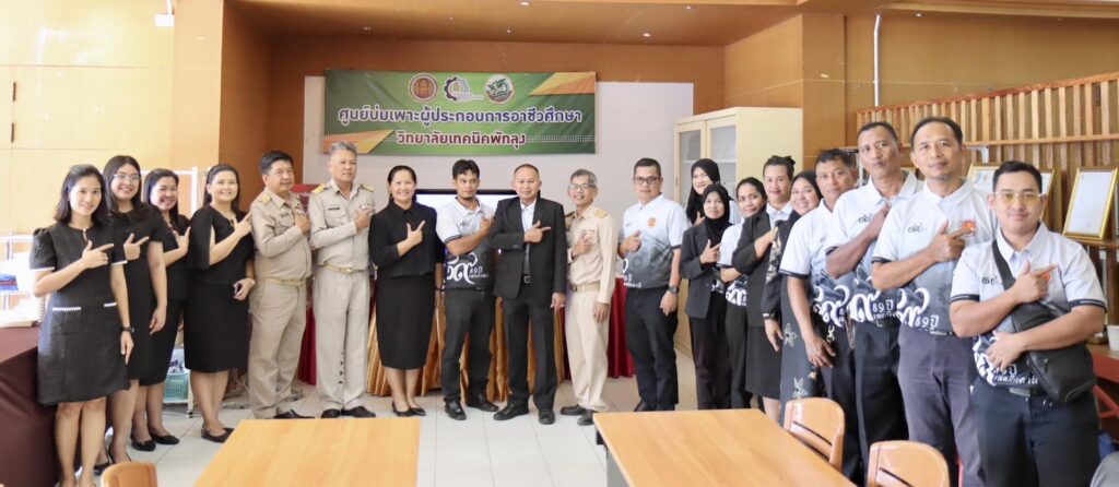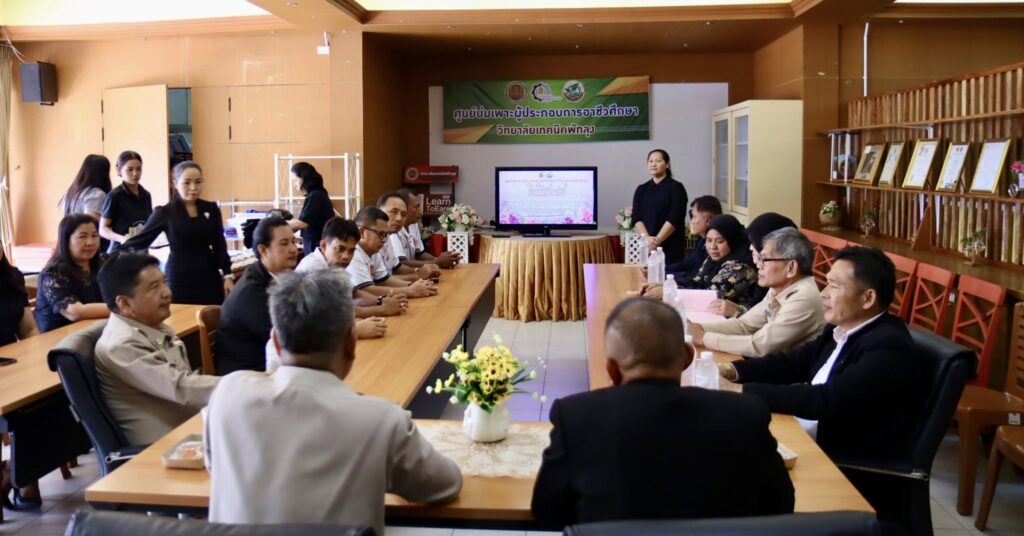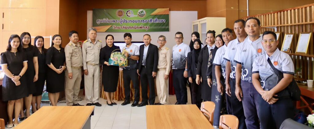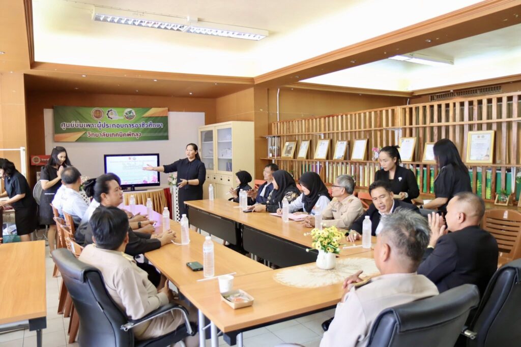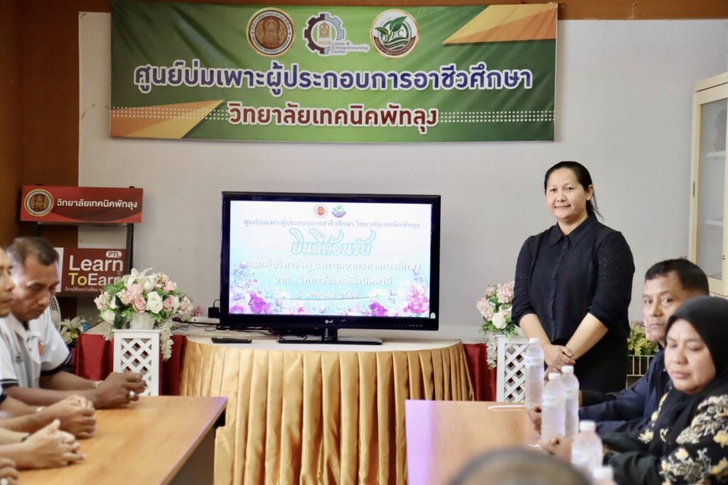 นางสาวชนม์ศิกานต์ แก้วกระจ่าง ผู้อำนวยการวิทยาลัยเทคนิคพัทลุง มอบหมายให้ นายเอกไชย นวลยัง รองผู้อำนวยการฝ่ายบริหารทรัพยากร พร้อมด้วยคณะผู้บริหาร นางสาวนัยนันต์ พรมจันทร์ หัวหน้าศูนย์บ่มเพาะผู้ประกอบการอาชีวศึกษา วิทยาลัยเทคนิคพัทลุง และคณะดำเนินงาน ร่วมต้อนรับ คณะผู้บริหาร คณะครู บุคลากรทางการศึกษา วิทยาลัยเทคนิคปัตตานี ที่เข้าศึกษาดูงานศูนย์บ่มเพาะผู้ประกอบการอาชีวศึกษา ณ วิทยาลัยเทคนิคพัทลุง