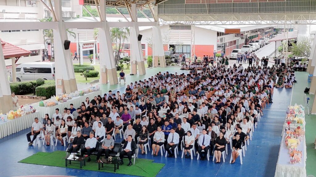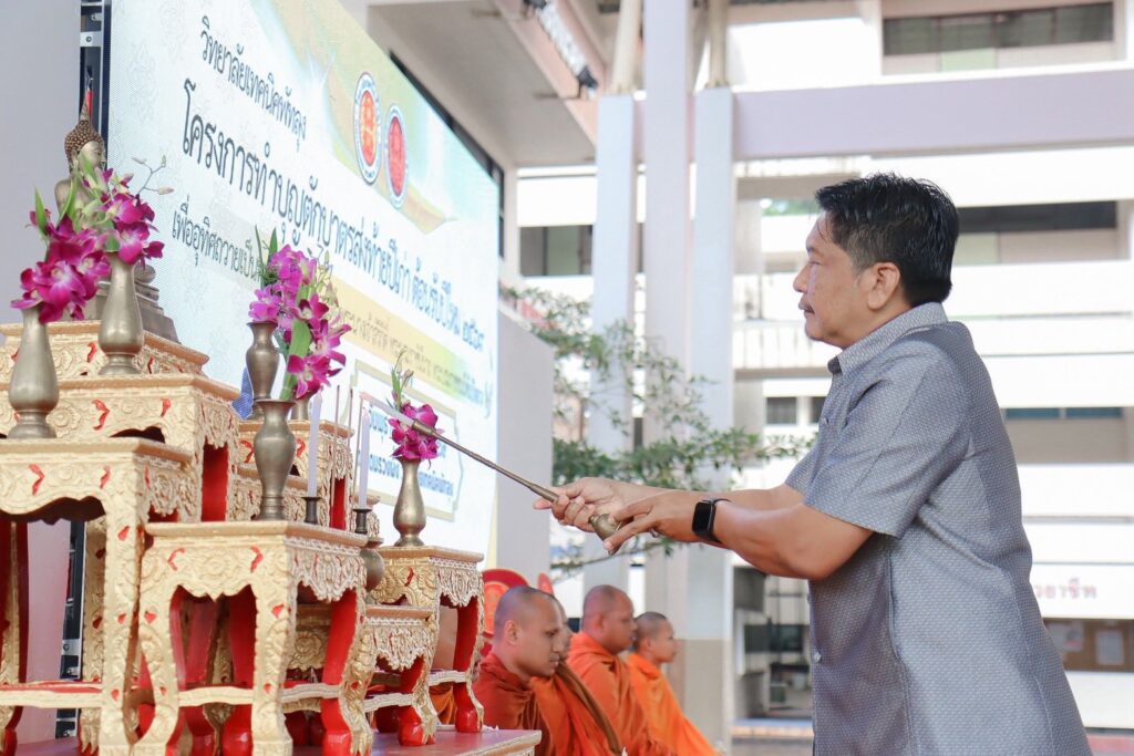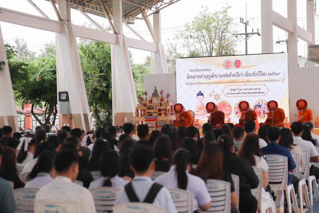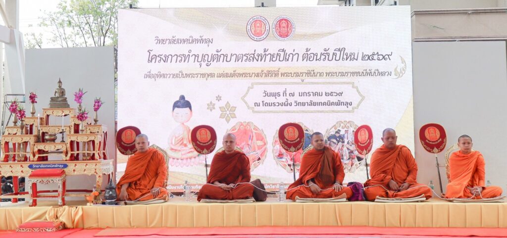 นางสาวชนม์ศิกานต์ แก้วกระจ่าง ผู้อำนวยการวิทยาลัยเทคนิคพัทลุง มอบหมายให้ นายณัฐกร อาจทอง รองผู้อำนวยการฝ่ายพัฒนากิจการนักเรียนนักศึกษา เป็นประธานในพิธี พร้อมด้วยคณะผู้บริหารทั้ง 4 ฝ่าย คณะครู บุคลากรทางการศึกษา และนักเรียนนักศึกษา วิทยาลัยเทคนิคพัทลุง ร่วมทำบุตรตักบาตร ส่งท้ายปีเก่า ต้อนรับปีใหม่ 2569