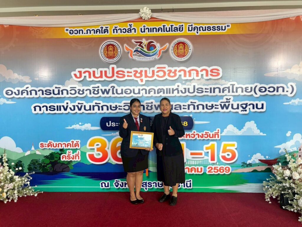 วิทยาลัยเทคนิคพัทลุงขอแสดงความยินดีกับ🎉👏🥰นางสาววรกมล บัวศรีนักศึกษา ระดับชั้น ปวส.2 แผนกวิชาการตลาด เจ้าของธุรกิจPixlet chabu🏆 คว้ารางวัลรองชนะเลิศชนะเลิศอันดับ 1 มาตรฐานระดับเหรียญทอง🏆 สมาชิกดีเด่นโครงการภายใต้การนิเทศ ประเภทสถานศึกษาขนาดใหญ่ ระดับภาคใต้ ประจำปีการศึกษา 2568✍️งานประชุมวิชาการองค์การนักวิชาชีพในอนาคตแห่งประเทศไทย การแข่งขันทักษะวิชาชีพ ทักษะพื้นฐาน ระดับภาคใต้ ครั้งที่ 36 ประจำปีการศึกษา 2568👩‍🏫 ครูที่ปรึกษา▪️คุณครูธนพร อนุมณี
