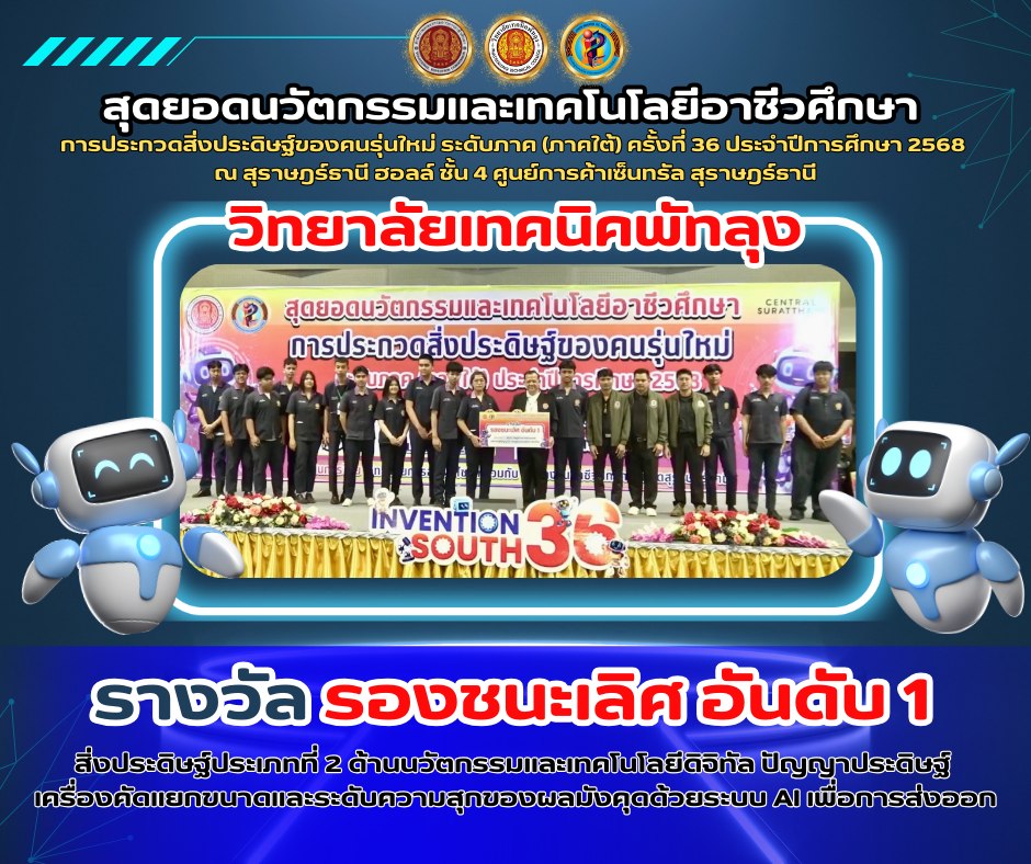 ขอแสดงความยินดีกับ นักประดิษฐ์วิทยาลัยเทคนิคพัทลุง #ได้รับรางวัลรองชนะเลิศอันดับที่ 1