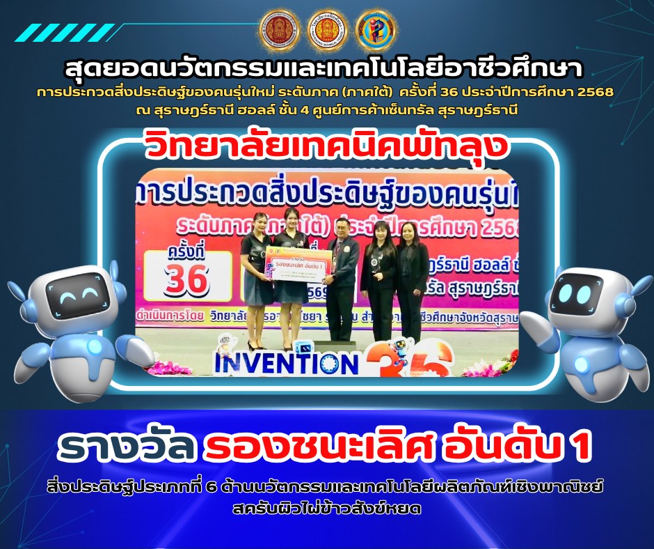 ขอแสดงความยินดีกับ นักประดิษฐ์วิทยาลัยเทคนิคพัทลุง #ได้รับรางวัลรองชนะเลิศอันดับที่ 1