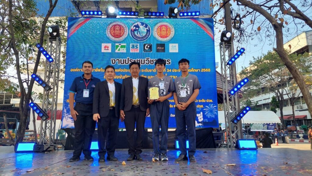 รางวัลรองชนะเลิศ อันดับ 2 การแข่งขันทักษะการเชื่อมต่อคอมพิวเตอร์เพื่อควบคุมอุปกรณ์ภายนอกด้วยปัญญาประดิษฐ์และบอร์ดสมองกลฝังตัว Iot ระดับ ปวช.