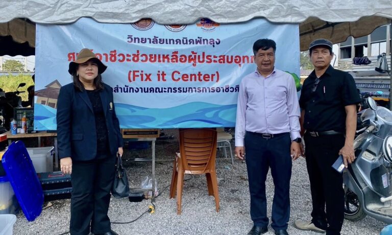 วิทยาลัยเทคนิคพัทลุง เปิดศูนย์อาชีวะ ช่วยเหลือผู้ประสบอุทกภัย (Fix it Center) ช่วยเหลือผู้ประสบอุทกภัยในพื้นที่จังหวัดสงขลา ร่วมกับเอกชัยศรีวิชัยและกลุ่มศิลปินใต้