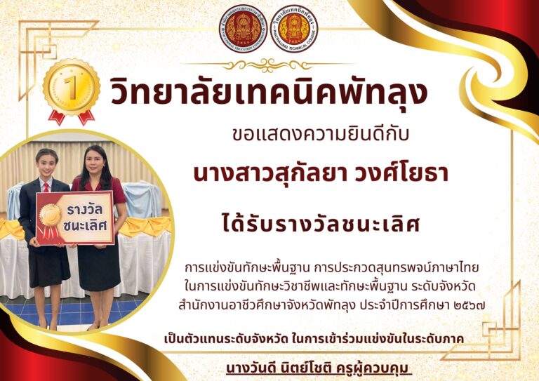 การแข่งขันทักษะวิชาชีพและทักษะพื้นฐาน ระดับอาชีวศึกษาจังหวัดพัทลุง ประจำปีการศึกษา 2567 ทักษะการพัฒนาสื่อประชาสัมพันธ์ โมชันกราฟิก และทักษะการพัฒนานวัตกรรมธุรกิจดิจิทัล