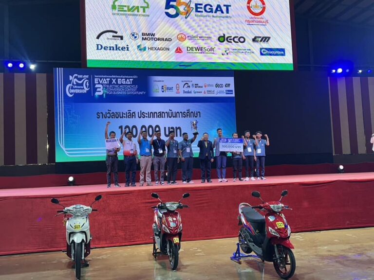 รางวัลชนะเลิศ การแข่งขันรถจักรยานยนต์ไฟฟ้าดัดแปลงเพื่อธุรกิจแห่งอนาคต ครั้งที่ 33rd EVAT x EGAT Electric Motorcycle Conversion Contest for Business Opportunity