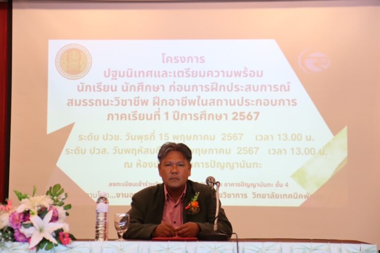 โครงการปฐมนิเทศและเตรียมความพร้อม นักเรียน นักศึกษา ก่อนการฝึกประสบการณ์สมรรถนะวิชาชีพ ฝึกอาชีพ ในสถานประกอบการ ประจำภาคเรียนที่ 1 ปีการศึกษา 2567 ระดับประกาศนียบัตรวิชาชีพชั้นสูง