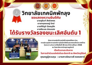 รางวัลรองชนะเลิศ อันดับ 1 มาตรฐานระดับเหรียญทอง (เจ้าของธุรกิจ Pixlet chabu) สมาชิกดีเด่นโครงการภายใต้การนิเทศ ประเภทสถานศึกษาขนาดใหญ่ ระดับภาคใต้ ประจำปีการศึกษา 2568