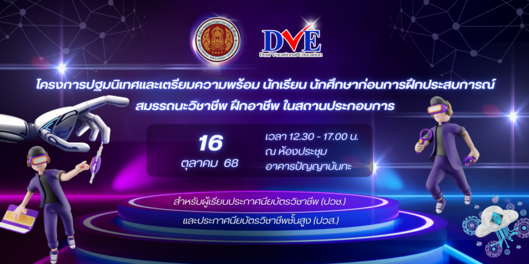 โครงการปฐมนิเทศและเตรียมความพร้อมนักเรียน นักศึกษาก่อนออกฝึกประสบการณ์ สมรรถนะวิชาชีพ/ฝึกอาชีพ ในสถานประกอบการ ประจำภาคเรียนที่ 2 ปีการศึกษา 2568