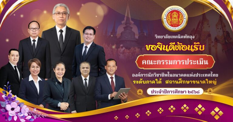 วิทยาลัยเทคนิคพัทลุง ยินดีต้อนรับ คณะกรรมการประเมินองค์การนักวิชาชีพในอนาคตแห่งประเทศไทย ระดับกลุ่มจังหวัด (สตูล, พัทลุง, สงขลา) สถานศึกษาขนาดใหญ่ ประจำปีการศึกษา 2568