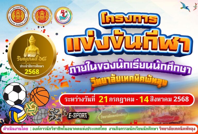 ประกาศ วิทยาลัยเทคนิคพัทลุง แจ้งหยุดเรียนกรณีพิเศษ 2 วัน ระหว่างวันที่ 20-21 พฤศจิกายน 2568