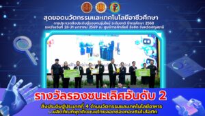 รางวัลรองชนะเลิศ อันดับ 2 สิ่งประดิษฐ์ประเภทที่ 4 ด้านนวัตกรรมและเทคโนโลยีอาหารผลิตภัณฑ์พุดดิ้งขนมไทยลอดช่องทองซินไบโอติก