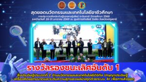 รางวัลรองชนะเลิศ อันดับ 1 สิ่งประดิษฐ์ประเภทที่ 2 ด้านนวัตกรรมและเทคโนโลยีดิจิทัล ปัญญาประดิษฐ์ เครื่องคัดแยกขนาดและระดับความสุกของผลมังคุดด้วยระบบ AI เพื่อการส่งออก