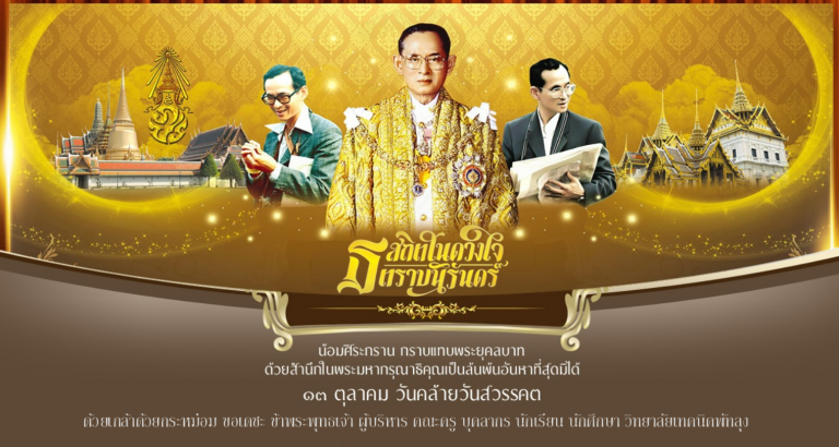 ๑๓ ตุลาคม วันคล้ายวันสวรรคต พระบาทสมเด็จพระบรมชนกาธิเบศร มหาภูมิพลอดุลยเดชมหาราช บรมนาถบพิตร น้อมศีระกราน กราบแทบพระยุคลบาท ด้วยสำนึกในพระมหากรุณาธิคุณเป็นล้นพ้นอันหาที่สุดมิได้ ด้วยเกล้าด้วยกระหม่อม ขอเดชะ ข้าพระพุทธเจ้า ผู้บริหาร คณะครู บุคลากร นักเรียน นักศึกษา วิทยาลัยเทคนิคพัทลุง