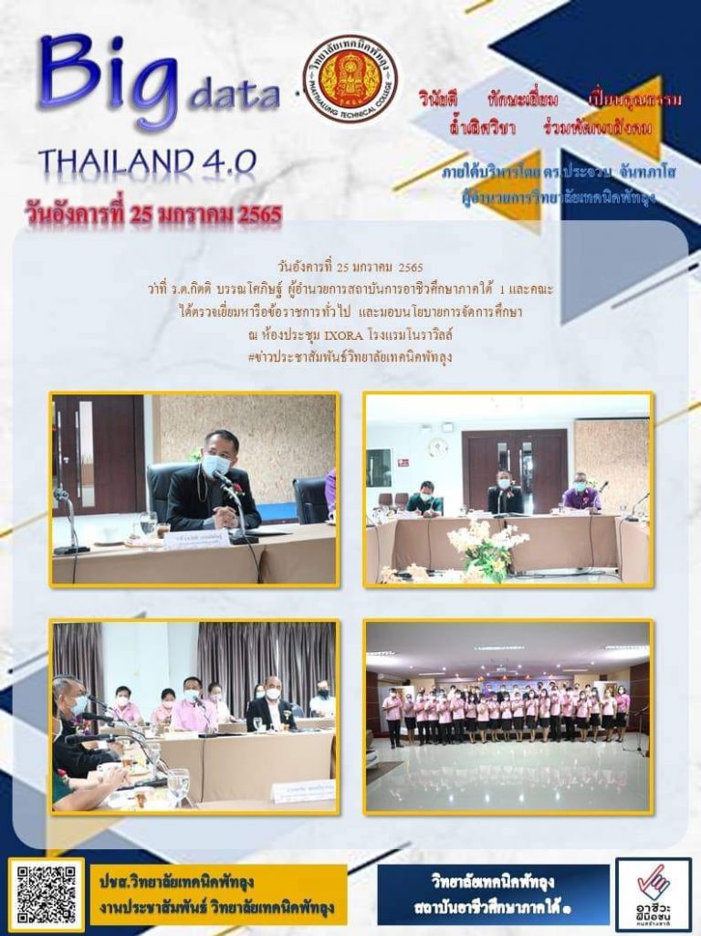 ว่าที่ ร.ต.กิตติ บรรณโศภิษฐ์ ผู้อำนวยการสถาบันการอาชีวศึกษาภาคใต้ 1 และคณะได้ตรวจเยี่ยมหารือข้อราชการทั่วไปและมอบนโยบายการจัดการศึกษา