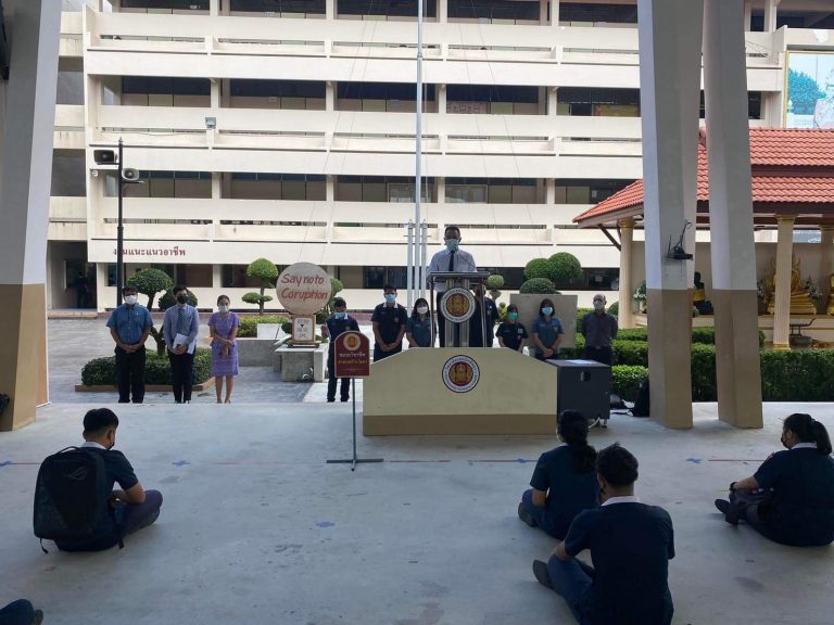 ดร.ประจวบ จันทภาโส ผู้อำนวยการวิทยาลัยเทคนิคพัทลุงได้กล่าวให้โววาทในการเปิดเรียนวันแรก แบบ On-site แก่นักเรียน นักศึกษา ในกิจกรรมส่งเสริมคุณธรรม จริยธรรมและกิจกรรม ชาติ ศาสนา พระมหากษัตริย์ ประจำภาคเรียนที่ 2/2564