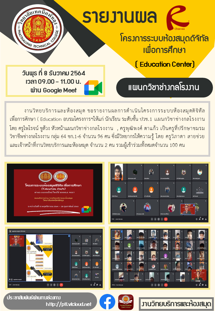 สำนักงานอาชีวศึกษาจังหวัดพัทลุง จัดประชุมและอบรมเชิงปฏิบัติการ การใช้โปรแกรม VEC-Skills ให้กับผู้รับผิดชอบในการจัดการประชุมทางวิชาการองค์การนักวิชาชีพในอนาคตแห่งประเทศไทย การแข่งขันทักษะวิชาชีพ ทักษะพื้นฐาน ระดับจังหวัด อาชีวศึกษาจังหวัดพัทลุง ประจำปีการศึกษา 2564