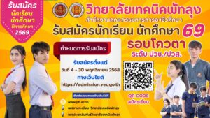 วิทยาลัยเทคนิคพัทลุง เปิดรับสมัครนักเรียนนักศึกษา (รอบโควตา) ประจำปีการศึกษา 2569