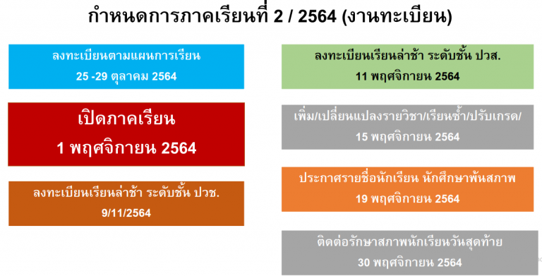 กำหนดการภาคเรียนที่ 2 / 2564 (งานทะเบียน)