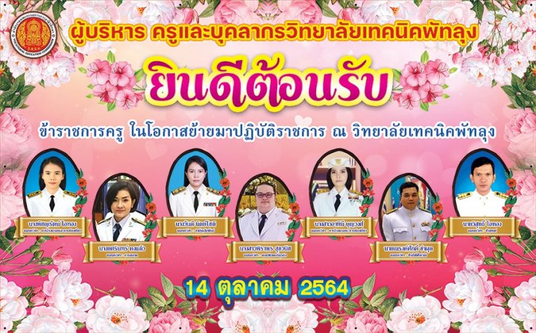 ผู้บริหาร ครูและบุคลากรวิทยาลัยเทคนิคพัทลุงยินดีต้อนรับข้าราชการครูในโอกาสย้ายมาปฏิบัติราชการ ณ วิทยาลัยเทคนิคพัทลุง