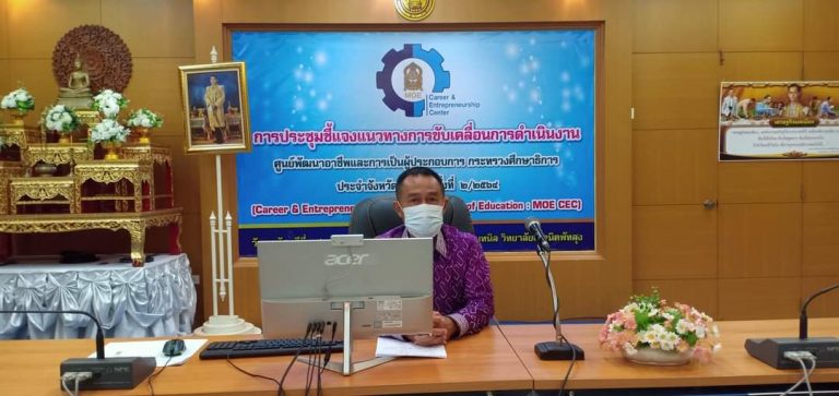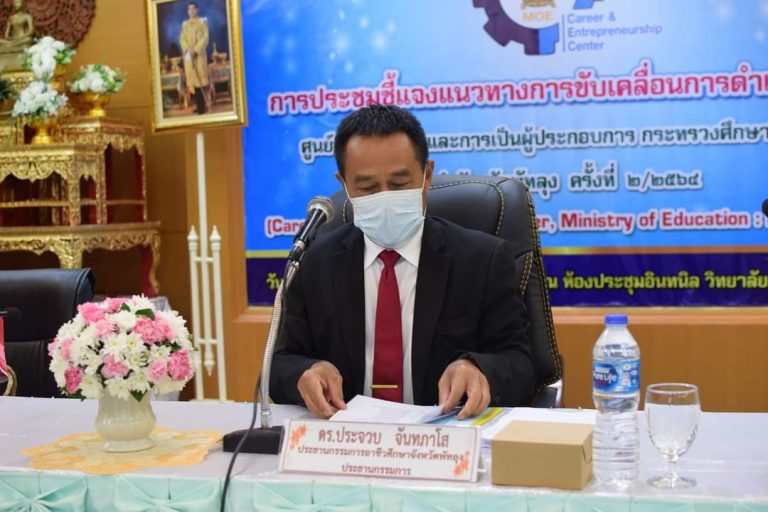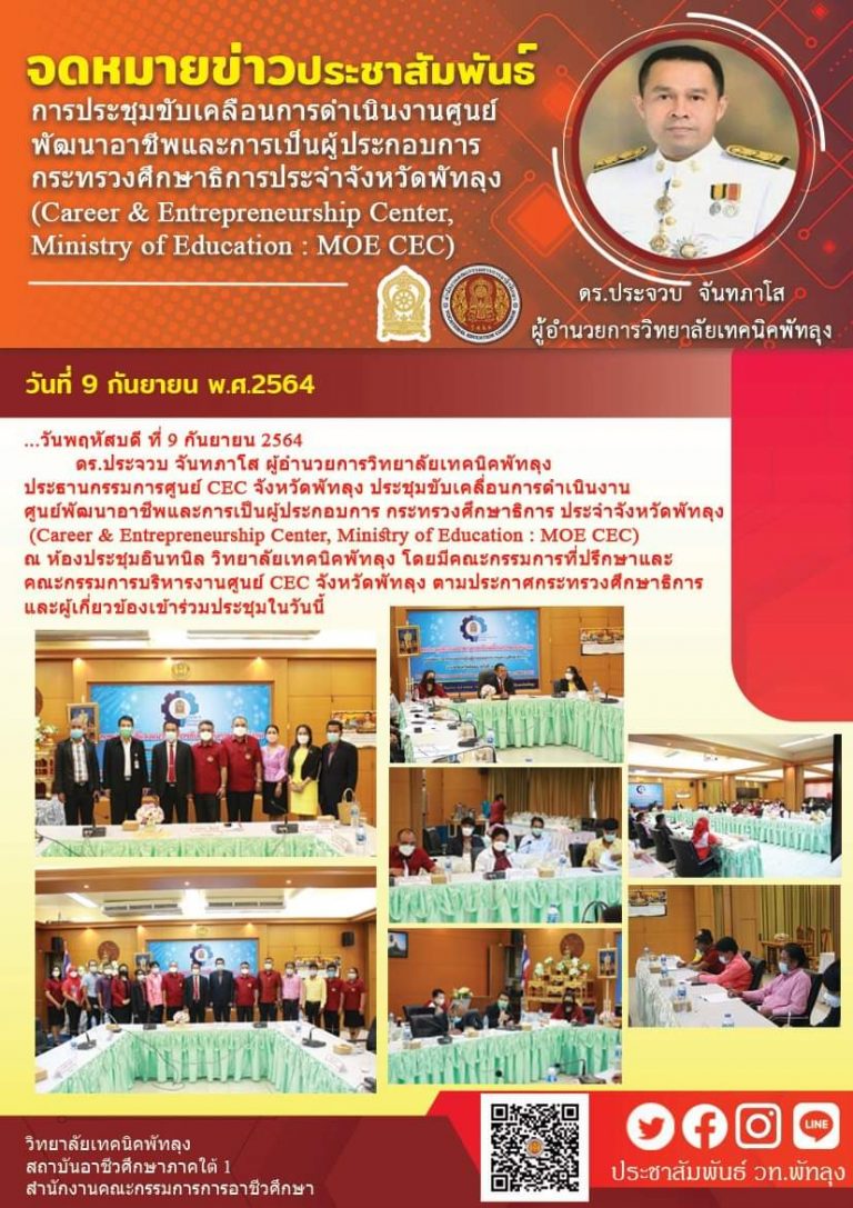 ดร.ประจวบ จันทภาโส ผู้อำนวยการวิทยาลัยเทคนิคพัทลุง ประธานกรรมการศูนย์ CEC จังหวัดพัทลุง ประชุมขับเคลื่อนการดำเนินงานศูนย์พัฒนาอาชีพและการเป็นผู้ประกอบการ กระทรวงศึกษาธิการ ประจำจังหวัดพัทลุง