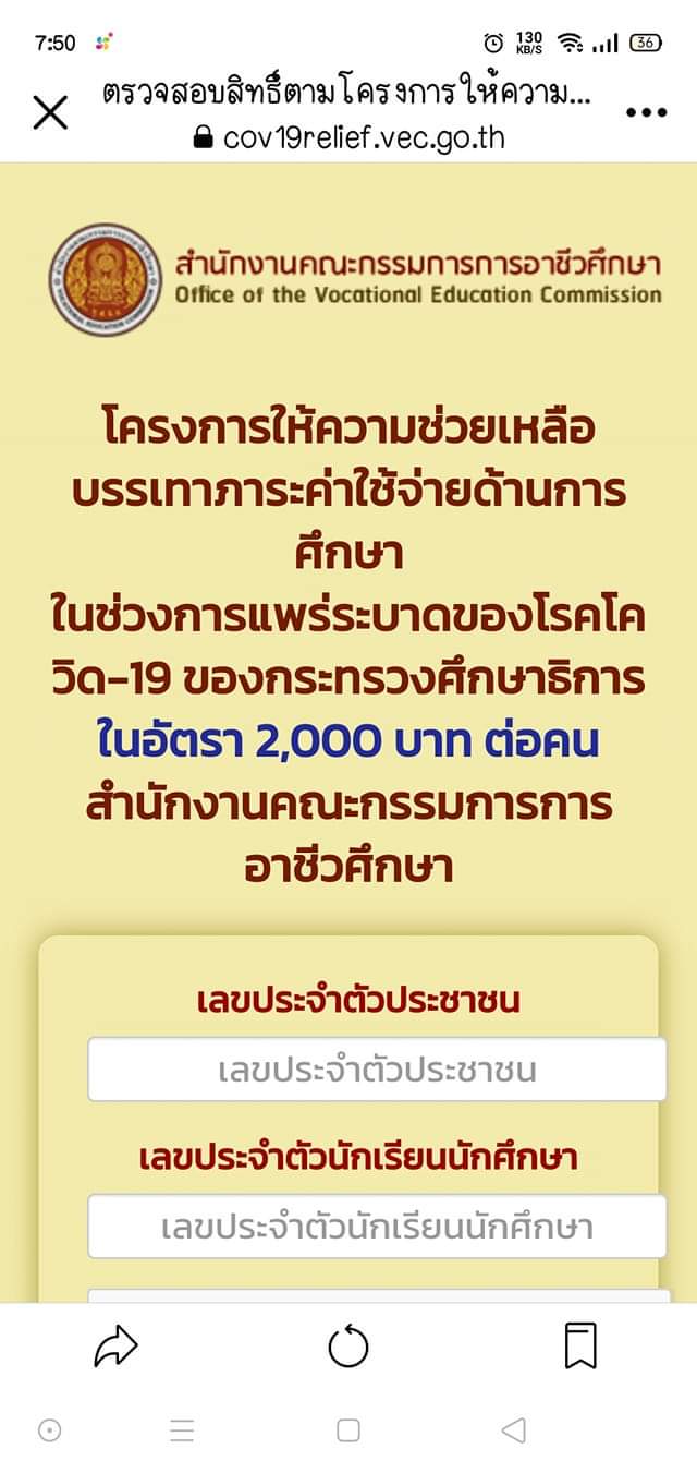 ช่องทางเช็คสิทธิ์โครงการให้ความช่วยเหลือบรรเทาภาระค่าใช้จ่ายด้านการศึกษาในช่วงการแพร่ระบาดของโรคโควิด-19 ของกระทรวงศึกษาธิการ