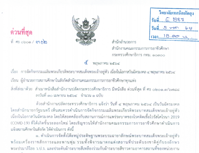 การจัดกิจกรรมเฉลิมพระเกียรติพระบาทสมเด็จพระเจ้าอยู่หัว เนื่องในโอกาสวันฉัตรมงคล ๔ พฤษภาคม ๒๕๖๔