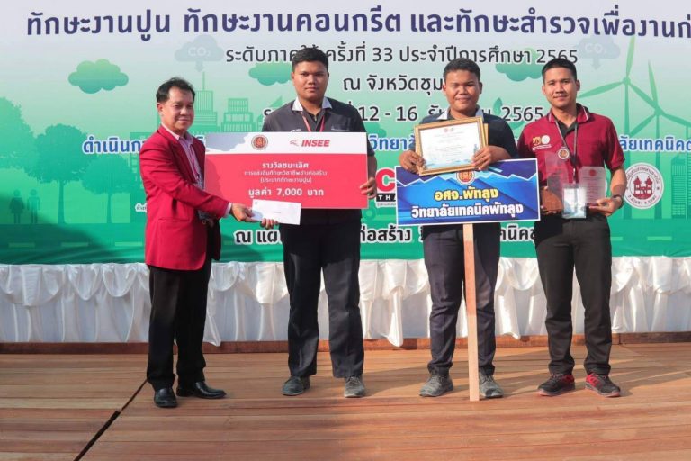 รางวัลชนะเลิศ การแข่งขันทักษะวิชาชีพ และการปฏิบัติงาน สาขาช่างก่อสร้าง – โยธา ทักษะงานปูน (ปวช.)