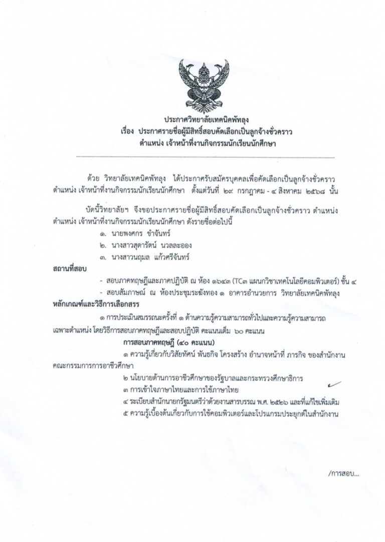 ประกาศรายชื่อผู้มีสิทธิ์สอบคัดเลือกเป็นลูกจ้างชั่วคราว ตำแหน่ง เจ้าหน้าที่งานกิจกรรมนักเรียน นักศึกษา