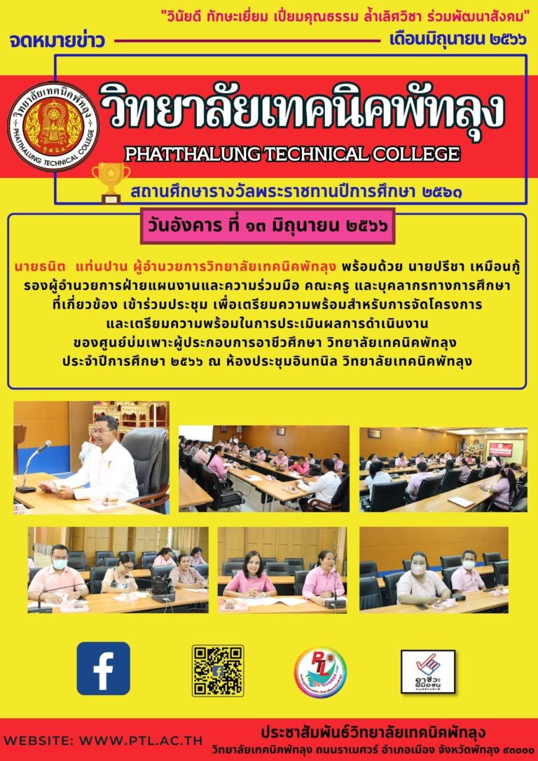 เตรียมความพร้อมสำหรับการจัดโครงการและเตรียมความพร้อมในการประเมินผลการดำเนินงานของศูนย์บ่มเพาะผู้ประกอบการอาชีวศึกษา วิทยาลัยเทคนิคพัทลุง ประจำปีการศึกษา 2566