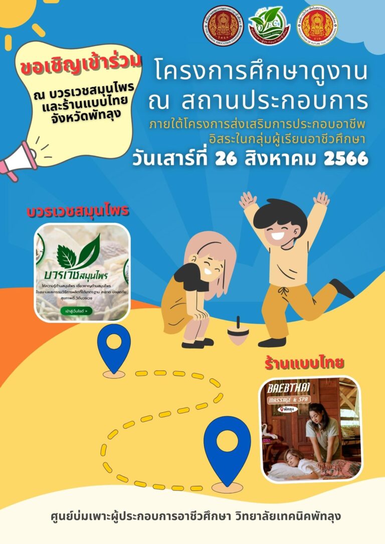 โครงการศึกษาดูงาน ณ สถานประกอบการ ภายใต้โครงการส่งเสริมการประกอบอาชีพอิสระในกลุ่มผู้เรียนอาชีวศึกษา ประจำปีการศึกษา 2566