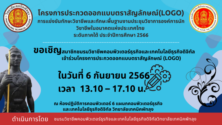 โครงการประกวดออกแบบตราสัญลักษณ์(LOGO) การแข่งขันทักษะวิชาชีพและทักษะพื้นฐานงานประชุมวิชาการองค์การนักวิชาชีพในอนาคตแห่งประเทศไทย ระดับภาคใต้ ประจำปีการศึกษา 2566