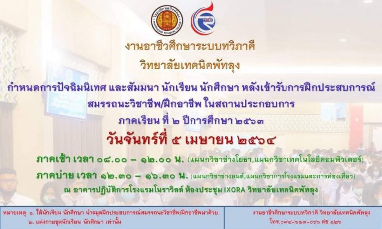 โครงการปัจฉิมนิเทศนักเรียนนักศึกษาฝึกงานฝึกอาชีพปีการศึกษา 2563