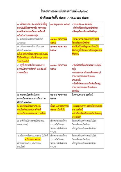 กำหนดการและขั้นตอนการลงทะเบียนภาคเรียนที่ 1/2564 นักเรียนระดับชั้น ปวช.2,ปวช.3 และปวส.2