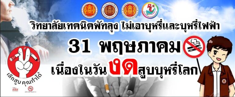 วิทยาลัยเทคนิคพัทลุง ไม่เอาบุหรี่และบุหรี่ไฟฟ้า 31 พฤษภาคม เนื่องในวันงดสูบบุหรี่โลก